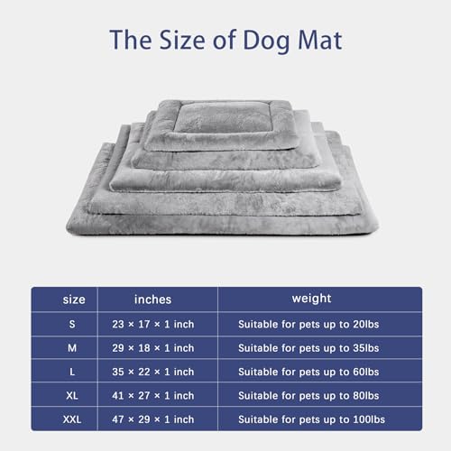 Multi-size options: Champets dog bed mat provides 4 sizes to choose, including Small:24 x 18 inches, Medium:29 x 21 inches, Large:36 x 23 inches, Extra Large:41 x 27 inches, which are highly suitable for both standard crate use or stand-alone dog bed mat use. Please note that the thickness of our dog crate bed is about 1 inch.