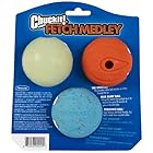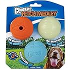 Chuckit! fetch medley includes three unique balls, each adding its own Spin to fetch for versatile and engaging play. For dogs that love to chase, the Chuckit! Whistler is equipped with four holes that emit a Whistling sound as the ball soars through the air. The Chuckit! Rebounce ball is made from natural, recycled rubber that creates high-bounce play, encouraging pets to leap and jump. For pets that are active at night, Chuckit! Max glow ball is easy to charge under bright light for illuminated playtime after dark. The fetch balls are made from natural, recycled rubber that is durable for long-term use and easy to wipe clean of dirt and slobber. Each of the balls allows high visibility for pets and pet parents, two with bright blue and orange colors and one Light up dog ball with glow-in-the-dark Pigment. The Chuckit! fetch medley is compatible with medium-sized Chuckit! launchers, enhancing fetch with slobber-free pickup and long-distance throws.