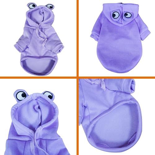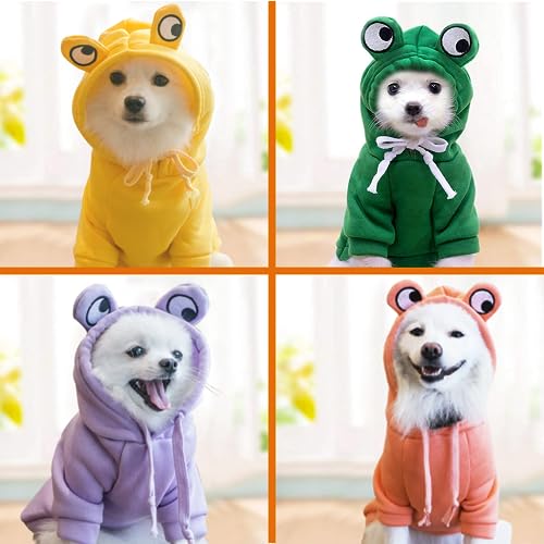 Funny and cute Pet frog sweater-This dog clothes design a frog shape on the head, let your dog/cats look more cutely after wearing it, and soft material provides warmth to your pet in the winter or a low-temperature room in summer