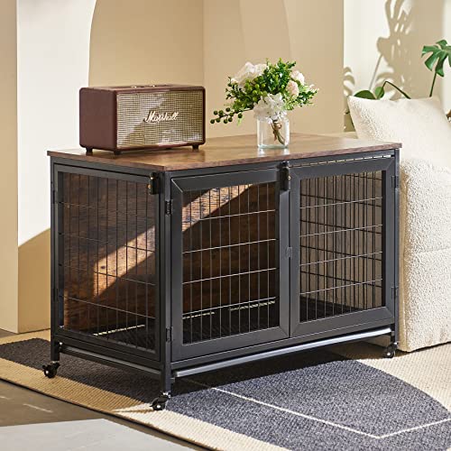 VERSATILE & PORTABLE: This 37″ dog crate furniture offers ample tabletop space with a 220 pound capacity to work as a living room side table, a bedroom nightstand, or a corner storage organizer, with its casters offering great maneuverability as you move it around