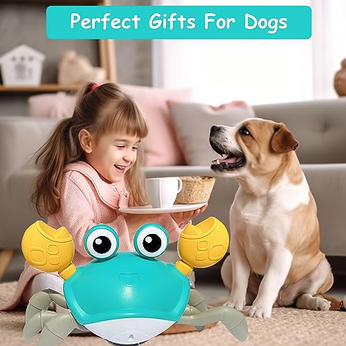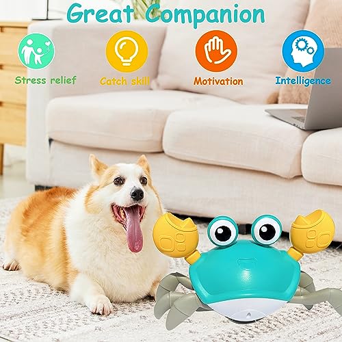 【Crawling Crab Dog Toy】Walking crab crawling sideways and moving fast, attracts dogs cats to catch and interact. Built-in sensors support sensitive obstacle avoidance, with attractive sound and lights, fun indoor and outdoor chasing game!