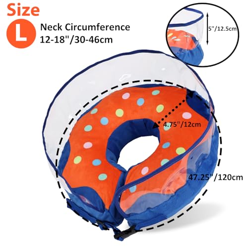 Pillow Cones for Dogs-With a soft plush cover, this inflatable cone for dogs after surgery can reduce the dog’s anxiety and stress during recovery more than the hard plastic donut cone for dogs after surgery. Your dog can eat, play, lay, rest, and sleep without restriction in daily life.
