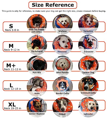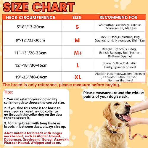 Dog Cones for Large Dogs-Soft dog cones for large dogs to stop licking is suitable for dogs with a neck circumference between 12″-18″, such as Border Collide, Dalmatian, Husky and Springer Spaniel, and so on. If the soft elizabethan collar is large for your dog and easily falls off, please try to loop the daily collar with the recovery collar. If you have any questions about size choice, we are happy to help you.