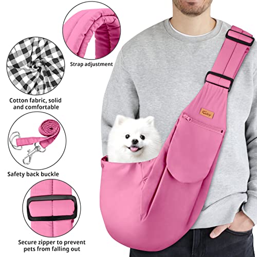 💖Safety first: Lovely Reversible Pet Sling Carrier. Hands-free sling-style carrier loops over shoulder while the pet rests in the pouch on the opposite hip to keep pet secure and comfortable.