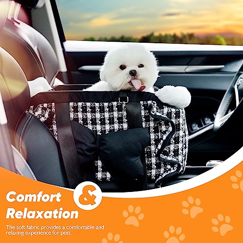 Comfort and Relaxation: The soft fabric and one booster cushion provide a comfortable and relaxing experience for pets whether they’re lying down, standing up, or lying on their stomachs.The Console dog car seat utilized classic plaid design with three-dimensional butterfly bow accents on two side and subtle wave detailing. Two soft plush sides create a cozy spot for your furry friend to lean against.