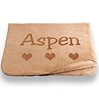 Personalized dog blanket with choice of hearts, bones or paws design. Personalize with your dog’s name. Perfect for couch, car, floor or any dog nap spot that you want to protect while adding silky smooth comfort.