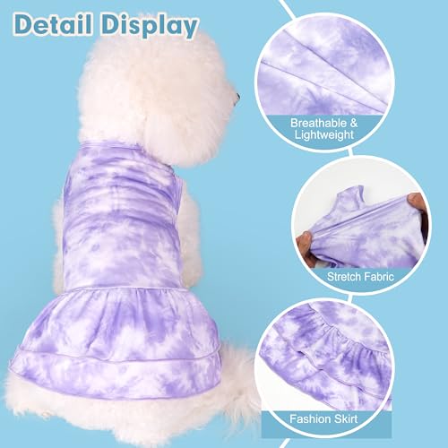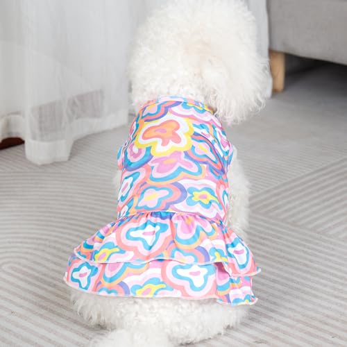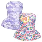 cyeollo 2 Pack Tie Dye Dog Dress Puppy Dresses Soft Breathable Dog Clothes for Small Dogs Girl Outfit Pet Apparel, Tie Dye+Flower, M