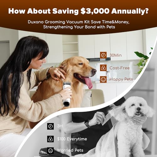 【Powerful Suction】 Featuring a brushless motor, the DUXANO Dog Grooming Kit delivers an impressive 15,000Pa suction power in MAX mode. Effortlessly capture every bit of pet hair, debris, dust, and more with ease