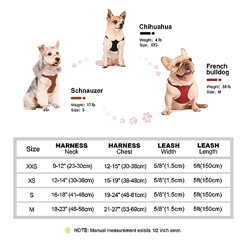 Dog Harness and Leash Set: This cute dog harness is matched with a 5 FT nylon padded dog leash, which can be 360° rotating, easily controlling the dog. The rose gold metal adjusting buckles and D rings are durable and convenient for your walking dogs. Soft nylon padded handle also protect your hand better.