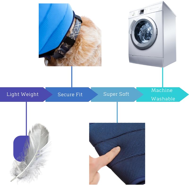 Secure and Comfy- Velcro our added loops at the bottom of our e collar for dogs to your pets collar for an extra secure fit. Unlike the hard plastic and dog donut collar our soft cone for dogs is made from sandwich mesh to ensure comfort in your pets time of need.
