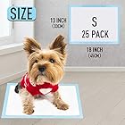 25 Pack Training Pads – Each Pad measures 13’’ x 18’’(33cm x 45cm) with an absorbent center pad and plastic border on all sides to prevent overflow.