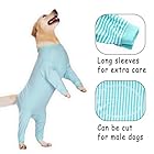 Full Coverage: Long sleeves to protect your dog’s extremities. The full body dog onesie protects injured areas and post-surgical wounds. Soft cotton fabric keeps your dog cosy and relieves anxiety.