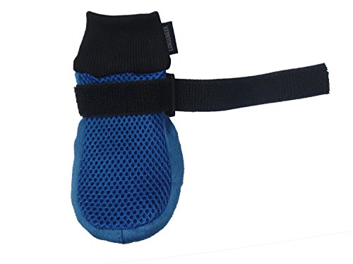 Upper is made of breathable mesh fabric, firmly hemmed by soft durable cloth around, with flexible cuffs at the top, capable to keep debris out, and make paws comfortable, cool and dry, suiatble for dog’s swimming, walking, and also good for bandages and injured paws