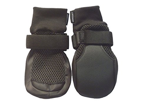 Upper is made of double-layer breathable mesh fabric, firmly hemmed by soft durable cloth around, with flexible cuffs at the top, capable to keep debris out, and make paws comfortable, cool and dry.