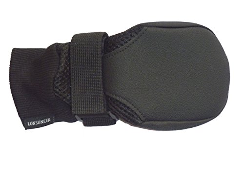 Cute dogs also love daily walks in life. This set of Lonsuneer soft skidproof mesh boots will act as a good partner for them, well provide traction and protect the paws in daily environment. The whole boot is very soft with the flexible cuff at the top. Please kindly bend the cuff down outwards to put on the boots, and then, recover the cuff after getting the boots on. Then, fasten the boots by the strap to prevent slipping off. Finally, adjust the boots slightly. Kindly Attention: Though the soles are waterproof, the boots can’t be applied in deep water or in sands, because there may be water or fine sand seepage through sewing needle holes or through mesh fabric. For storage, please keep the boots in a dry, dark, and relatively cool place. The boots upper material is slightly springy, so please measure across the whole paw pad to get the paw width and length for reference, incl all the toes, nails and hair. Practicable Reference Size of L: Inner Sole Length 3.15 Inch, Inner Sole Width 2.83 Inch. Allowance Error: 0.11 – 0.20 Inch.