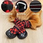Waterproof & Warm Dog Boots: The red and black plaid fabric of this dog boot has a waterproof coating to keep the dog’s paws dry in cold & wet weather such as rain, snow, etc., but note that this is not that rain boots cannot be soaked in water for a long time. In addition, the inner layer of the boot is a thin layer of fleece, which is soft and comfortable, will not scratch the dog’s paw, and keep the dog’s paw warm at the same time.