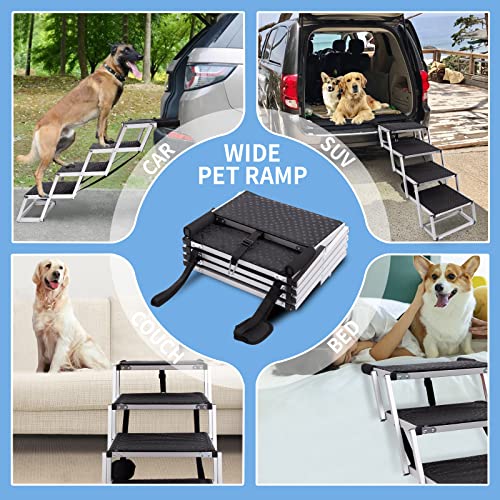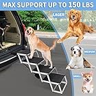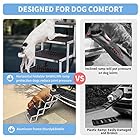 【Lightweight and Durable】: Rust-proof aluminum alloy overall frame will not deform and be bent, support up to 150 lbs suitable for your small to large dogs everyday use. The upgraded safety tether clip to better secure the stair, When your dog climbs the steps, the steps do not shake to prevent the dog ramp from disengaging or falling over, You can reassure to use this firm and durable dog ramp.