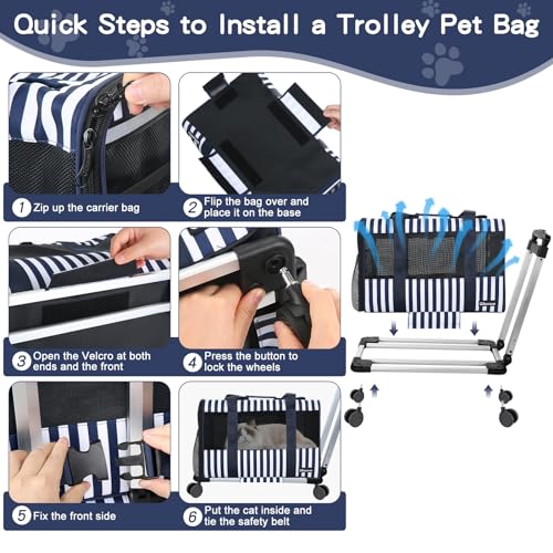 Removable Pet Carrier for Dogs and Cats: Removable platform with 4 360° swivel wheels and telescoping handle, suitable for outdoor walking, veterinary or travelling. This dog soft-sided carriers also features adjustable shoulder straps, advanced velcro for easy pulling and pushing of the platform, and wheels for easy assembly or disassembly.