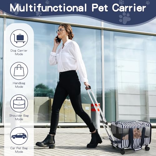 Premium Materials: Thisdog carriers for small dogs with Wheels is made of durable 600D Oxford cloth and scratch-resistant mesh. Its excellent resistance to tearing and abrasion makes it durable, and the wheels are made of hardened material, which is stronger and more durable, meeting your needs with superior performance and practicality.