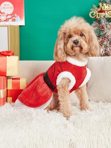 【High-quality Dog Xmas Outfits】This puppy girl clothes made of soft and breathable velvet material, christmas dog dress soft and skin friendly, clothes for dogs will not scratch dog’s skin, soft fabric keeps your pet comfy; perfect to protect the skin and keep your pet warm.