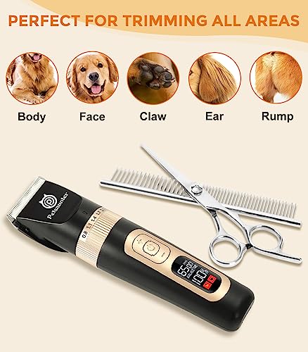 🐈【Easy to use】Our pet clipper is perfect for beginners. With a one-click start and easy-to-adjust settings, it’s a breeze to use. Cordless and rechargeable, you can groom your pet anywhere. Its sharp blades make quick work of thick coat, and ensure a smooth cut. Give your pet a quick trim or full makeover with ease!