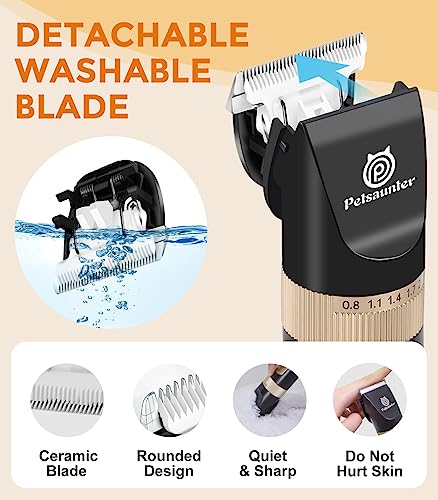 🐈【Low Noise & Low Vibration】: Petsaunter electric grooming clipper is only about 50dB in operation. This helps your pet feel comfortable and not afraid even if your pet is very timid. The stress-free grooming solution for your furry friend!