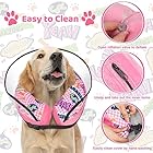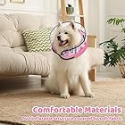 Adjustable strap buckle: with the adjustable strap buckle design, the dog recovery cone collar can adjust according to the dog’s neck circumference. Meanwhile, it is wide enough that the dog can’t reach around to bother her wounds but soft enough that she doesn’t crash into furniture. Also makes eating easy while wearing it because it stays on her neck without falling forward.
