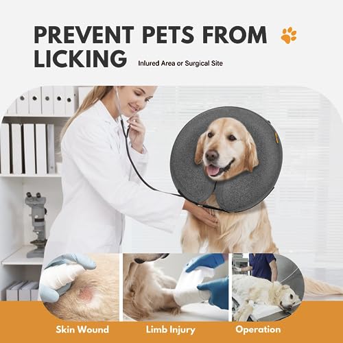 EXTRA SOFT CONE FOR DOGS AFTER SURGERY – This inflatable collar is a perfect dog cone alternative after surgery. The cone for dogs after surgery can prevent pets from licking wounds, sutures, especially rashes or after surgery, and allow your pet to eat, drink, and sleep normally, which is good for recovery.Soft cones for keeps your dog comfortable, can even act as a neck pillow which helps him/her fall asleep quickly and forget the pain of the wound.