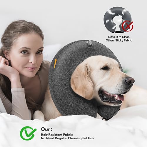 NON-STICK FABRIC & DURABLE – Unlike other common velvet inflatable dog collars for after surgery donut, the outside of this dog cone is made of upgraded non-stick fabric, then you won’t have to keep cleaning pet’s hair frequently. And the E-collar for dogs upgraded the quality of the zipper to prevent the zipper from breaking during inflation or use. Trust us, your furry friend will thank you for investing in a dog donut collar that’s both durable and comfortable!