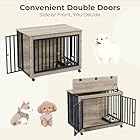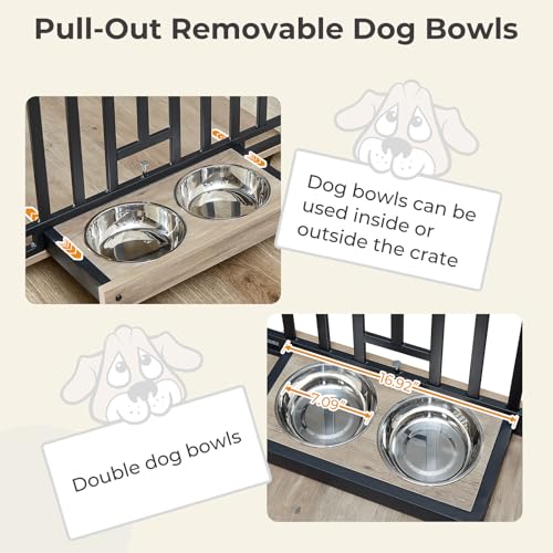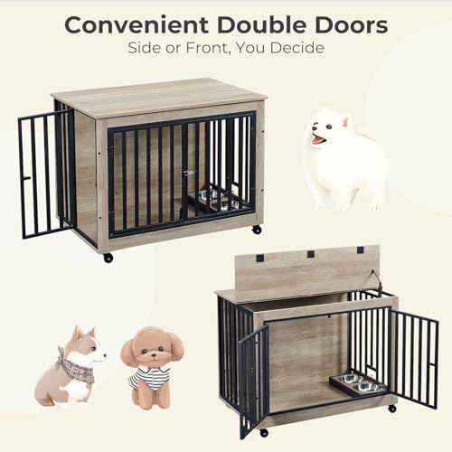 【With Flexible Bowls】Lyromix furniture dog crate is equipped with pull-out double dog bowls that can be used both inside and outside. The front and side doors of this dog kennel furniture allow convenient entry and exit for your dog. The pulleys positioned at the bottom can significantly reduce the amount of physical exertion required during the process of moving it, and can be secured in a specific location if desired.