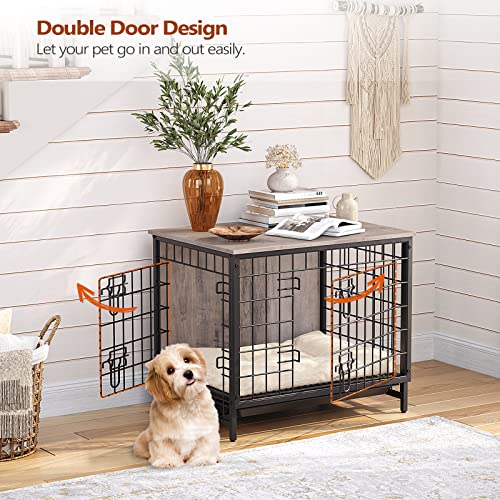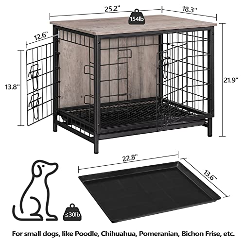Double Door Design: The size of the dog crate furniture is 25.2″L x 18.3″W x 21.9″H. The side door can be installed on the left or right side. Your pet will go in and out easily with double doors!