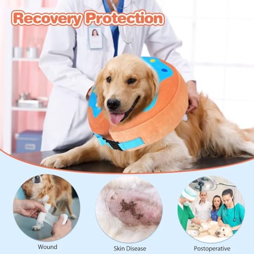 🐶【Protective Dog Cone Collar】This inflatable dog donut collar is a perfect dog neck cone alternative after surgery. The inflatable dog collars for after surgery can prevent pets from licking wounds, sutures and allow your pet to eat, drink, and sleep normally, which is good for recovery. The soft cone for dogs and cats is lighter and softer, allowing pets to feel the most intimate care and warmth. The cute donut shape makes it like a pet ornament instead of a dog donut collar.