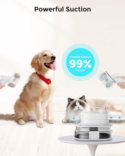 🐶🐱4L Capacity for Large Dog: It is equipped with 4L huge dust cup, which is at least two times larger than other brands, especially handy for families who own pets with thick fur, large pet or 2+ dogs/cats. Just remove all the dust and hair at just one press after dog vacuum grooming and easy to clean with water.