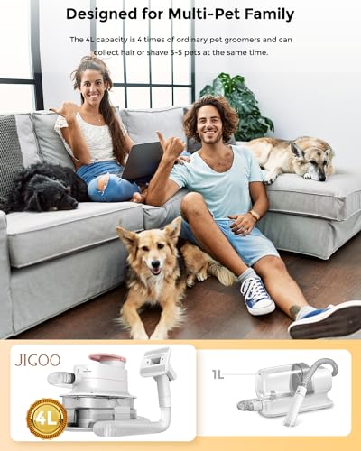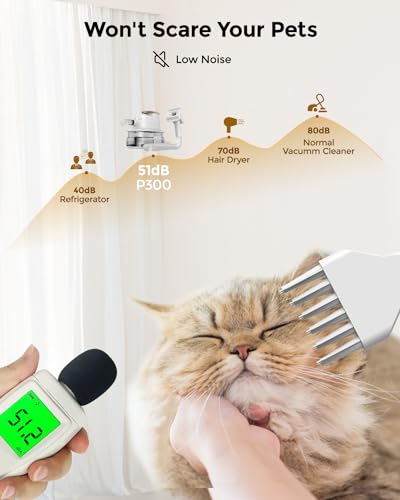 🐶🐱Super Quiet for Cats: Different from ordinary pet grooming vacuum brands, JIGOO P300 was designed with cats’ sensitivity to noise in mind. It uses noise reduction technology to reduce the noise to 51dB, which is similar to the sound of ordinary indoor conversations and will not scare the cats away. Families with cat pets can trust it.