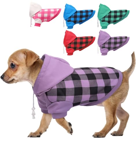 MULTI-OCCASSIONS – Classic plaid. The Dog Sweatshirt can be worn by dog boys or girls. This dog coat is suitable for indoor and outdoor wear, daily walking, photographing, party and even formal occasions (Pelo de perro, Sudadera con capucha para perros, Suéter para perros, Sudadera para perros)