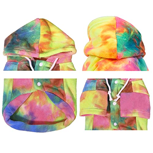 Dog Hoodie for Small Medium Dogs Tie Dye Pet Coat Dog Clothes Dog Pajamas Fall Winter Daily Warm Polar Fleece Soft Lightweight Doggie Sweatshirt Halloween Christmas Festival Apparel for Dogs Cats