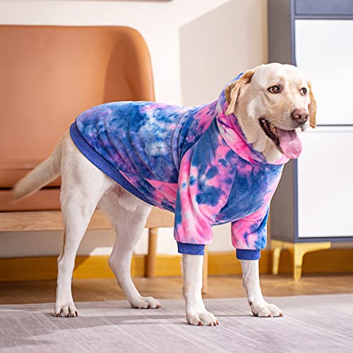 Dog Hoodie, Tie Dye Dog Winter Clothes, Pet Hooded Sweatershirt Pullover, Dog Outfit Coat Apparel for Small Medium Large Dogs, Pink Blue M