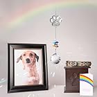 [Well-Designed Pet Memorial Sun Catcher] 40mm High refractive K9 crystals ball & themed multi color super thin edge crystal prisms , ended with a diameter 2cm stainless key ring at the top for easier hanging. creating an awe-inspiring display of rainbow lights when bathed in direct sunlight.[Special 3D Paw Print Pet Memorial Gifts] The pet memorial sun catcher designed with the pet paw, some words ” you left your paw on our hearts” and paw print are engraved on it, which is distinctive and attractive, the lovely paw can remind you of the happy memory between you and your pet.