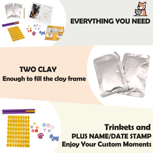 【Pet Safe Clay & Easy to Use】We produce clay in small batches for maximum freshness.Safe for cats, dogs, and other pets.We provide 2 pack of clay.It Enough to cover the clay box.you can have enough space for paw prints, names, dates and trinkets.Simply knead, roll, press, and you’re done. Clay air-dries hard and clear impression of your pet’s precious paw print.The clay can be Re-used before dry.