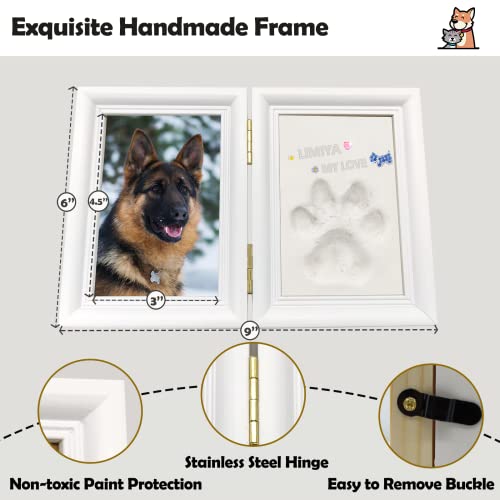 【Don’t Forget he/she is still right here】Maybe you are looking for somethings that can be used to remember Pet. Choose our Pet paw print impression kit! It consists of two parts: one is the frame (photo size is about 3‘’Wx4.5‘’H),the second is the clay part.it can not only clear impress your pet’s paw print, but also personalized decoration. Make a paw print frame with your pet and leave your Precious memories in it. Whenever you see the frame, you can feel that she / he is still with us.