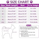 - 【Size】Available in 6 sizes. X-Small:back length:7.87in,Bust:12.20in,fit 1.5-3.3lb. Dog pajamas are recommended for small and medium-sized dogs. The size chart may vary from different merchants, please choose the appropriate size according to our size chart. Different breeds of dogs also have different body shapes, so it is important to accurately measure the dog’s chest length (preferred) and back length before purchasing.