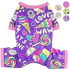 - 【Cute Dog Jumpsuit】Beautiful patterns, bright colors, puppy jumpsuit, round neck, long sleeve design. Pajamas for small and medium-sized dogs come in nice colors and have fun and cute patterns. These dog pajamas are perfect to wear around the house and keep your pet cute and comfortable all day long with this cute puppy outfit.
