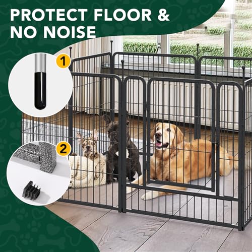 🐶【Durable & Safe Dog Playpen Indoor】Indoor dog pen is made of electrophoresis metal panels, fencing for dogs has non-toxic, beautiful, firm and anti-rust functions.The stakes are designed with rounded ball tops to protect the dog’s claws from injury. The rods are easily inserted into the ground for greater stability and rigidity. The automatic gravity-actioned locking mechanism will ensure you can open and close the door smoothly and reduces the chance of dogs unlocking by themselves.