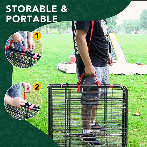 🐶【Easy to Assemble and Foldable】 No need any tool, you can set up outdoor dog kennel with only a few minutes to assemble these portable dog fences and pack them away very quickly, because of the rod-connected design. It is very important as you don’t want to be wasting lot of time.