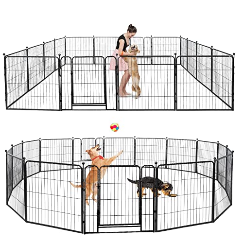 🐶【Safe Enclosed & Expandable Area】The heavy-duty dog pen is sturdy and durable, pet fence provides a safe enclosed area for your pups play, run around and get the exercise they need, each panel is separate, which can be combined repeatedly for larger square footage, this temp fencing makes potty and house training much easier