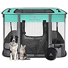 SUITABLE DIMENSIONS: Playpen Size :28″L x 22″ W x 18 “H (S). Compared with the round pet playpen on the market, our dog playpen is a new and upgraded style and has many intimate details. Two rollable mesh doors with locking zippers provide easy in/out access for your pets. There is an accessory pocket and a water bottle pocket and two snack lanyards on the playpen. Elastic straps-easy to fix after folding, soft pet playpen also features a handle bar for dragging purposes, lightweight easy carry