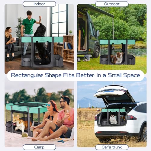 NEW DESIGNED FOR PETS:Dog playpen tent promotes comfort and security, providing your pet a safe enclosed space.Rectangular shape saves more space .The 360-degree light mesh window view and ceiling deliver great airflow, as well visibility for anxious pets and owners.This dog playpen keeps your pet stay in this pet playpen secure, spacious interior making it more fun for your pet.