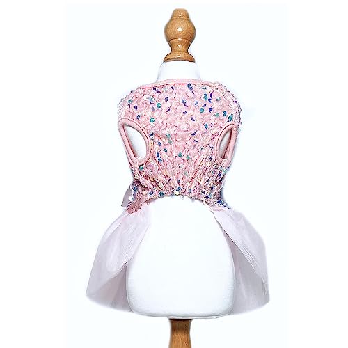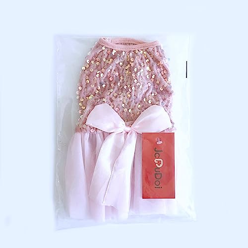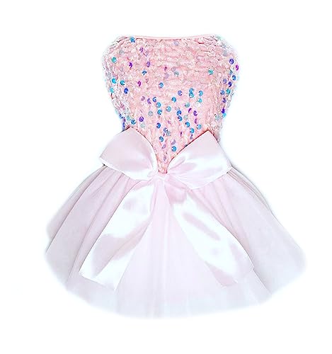 Dog Princess Formal Dress for Small Dogs Girl,Sparkling Sequins Sweet Pet Clothes Wedding Birthday Party Puppy Dresses,Cat Apparel Accessories Costumes Outfit Skirt Pink (Pink, X-Small)