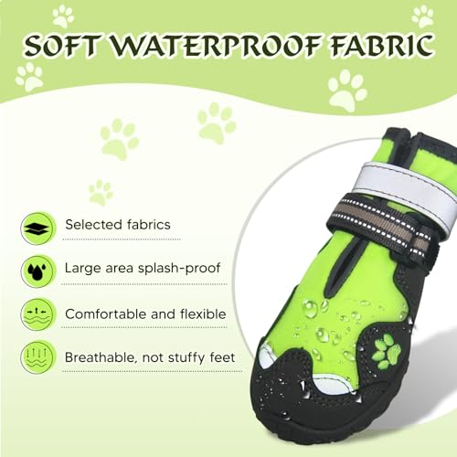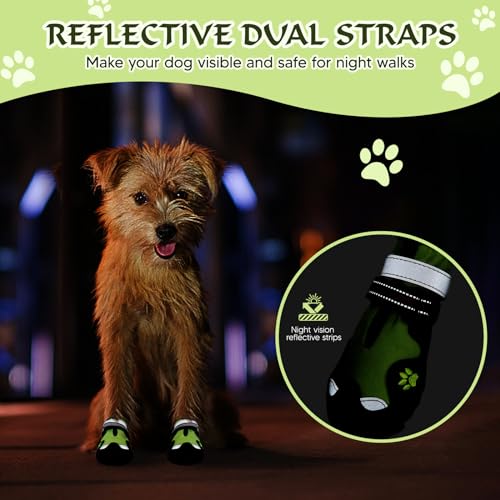 - [REFLECTIVE & COMFORTABLE] – Make your dog visible and safe for night walks, velcro double straps for easier adjustment. Dog snow boots 100% softness ensure optimal moisture wicking, keeping paws naturally warm and comfortable for all seasons.