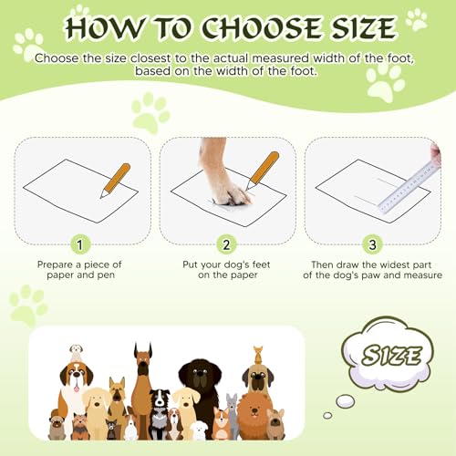 - [SIZE GUIDE] – Not every seller’s sizing is the same due to the different craftsmanship of the soles. Please be sure to follow the steps carefully to measure the width of your dog’s paw and check our sizing chart, not other brands, before purchasing to ensure you get the correct size. Width is the key to choosing the correct size for your dog.